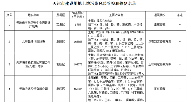 市生態(tài)環(huán)境局 市規(guī)劃資源局關(guān)于更新《天津市建設(shè)用地土壤污染風(fēng)險(xiǎn)管控和修復(fù)名錄》的通知各區(qū)生態(tài)環(huán)境局、規(guī)劃資源分局: 為貫徹落實(shí)《中華人民共和國土壤污染防治法》、《天津市土壤污染防治條例》,加強(qiáng)我市建設(shè)用地土壤環(huán)境管理,實(shí)行建設(shè)用地土壤污染風(fēng)險(xiǎn)管控和修復(fù)名錄制度,根據(jù)我市建設(shè)用地地塊風(fēng)險(xiǎn)評(píng)估和治理修復(fù)...