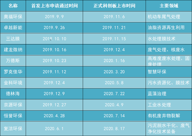 環(huán)保在線統(tǒng)計(jì)發(fā)現(xiàn),截至8月25日,科創(chuàng)板已經(jīng)上市11家環(huán)保企業(yè),具體如下:
