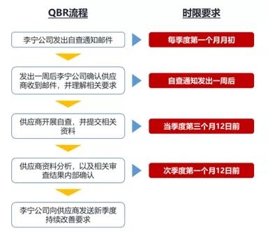 除此以外,對(duì)于現(xiàn)已經(jīng)開展合作關(guān)系的供應(yīng)商,李寧公司會(huì)以季度和年度的頻率持續(xù)評(píng)估其社會(huì)責(zé)任表現(xiàn)與風(fēng)險(xiǎn),以保障供應(yīng)商日常合規(guī)管理和持續(xù)改善。以季度評(píng)估(Quarterly Business Review)為例,李寧公司會(huì)要求供應(yīng)商通過(guò)提供相關(guān)文件,并開展自查活動(dòng),發(fā)現(xiàn)日常工作和管理中存在的風(fēng)險(xiǎn),并采取相應(yīng)措施有效應(yīng)對(duì)。