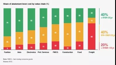 從消費(fèi)者角度來(lái)看,低碳轉(zhuǎn)型的成本不會(huì)造成消費(fèi)者端的價(jià)格劇增。盡管成本仍然是快消巨頭在低碳轉(zhuǎn)型需面臨的問(wèn)題,但是World Economic Forum研究表明,大約三分之二的供應(yīng)鏈所產(chǎn)生的碳排放可以通過(guò)循環(huán)經(jīng)濟(jì)、提高能源使用效率和使用清潔能源等方式,以極低的成本抵消。同時(shí),從波士頓咨詢發(fā)布的報(bào)告中可以看出,在產(chǎn)品價(jià)值鏈中,約40%產(chǎn)生的碳排放可以被以小于10歐元每噸二氧化碳當(dāng)量的價(jià)格抵消,剩下的部分中,約40%產(chǎn)生的碳排放可以被以10歐元到100歐元每噸二氧化碳當(dāng)量的價(jià)格抵消。