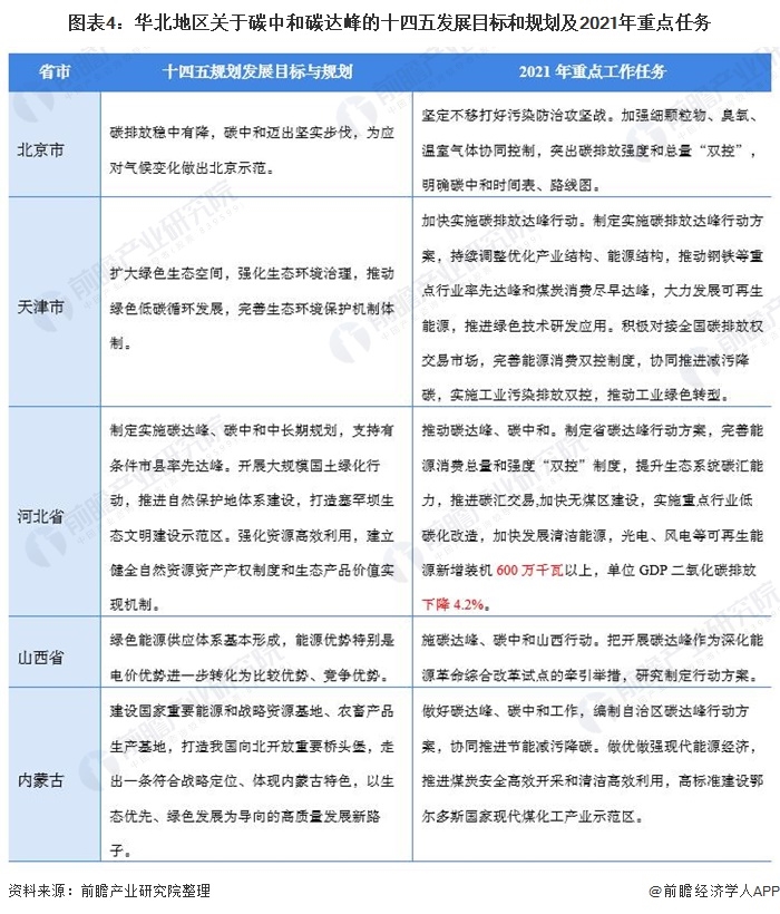 隨著碳中和和碳達(dá)峰任務(wù)目標(biāo)的提出,煤炭又是碳排放的主要能源來源,因此華北地區(qū)成為我國(guó)傳統(tǒng)能源產(chǎn)能結(jié)構(gòu)調(diào)整的頭號(hào)陣地。華北地區(qū)在碳中和碳達(dá)峰背景下十四發(fā)展的主要目標(biāo)和規(guī)劃和2021年重點(diǎn)任務(wù)是為實(shí)現(xiàn)碳達(dá)峰和碳中和加快傳統(tǒng)能源能源結(jié)構(gòu)的的改革,推進(jìn)煤炭安全高效開采和清潔高效利用。