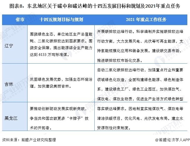 結(jié)合區(qū)域發(fā)展特性,東北地區(qū)各省十四五規(guī)劃目標(biāo)和2021年重點(diǎn)工作任務(wù)中主要以發(fā)展能源替代和建設(shè)綠色工業(yè)園區(qū)為主。