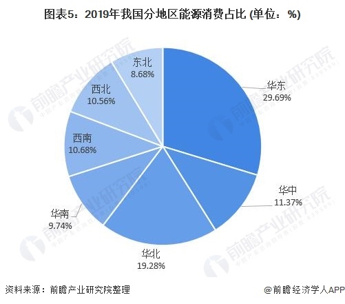 但經(jīng)濟(jì)發(fā)達(dá)的背后意味著高占比的能源消耗,根據(jù)2020年國(guó)家能源統(tǒng)計(jì)年鑒所披露的相關(guān)信息,我國(guó)2019年華東地區(qū)總能源消費(fèi)占比達(dá)29.69%,是我國(guó)七大地區(qū)中能源消費(fèi)量最多的地區(qū)。