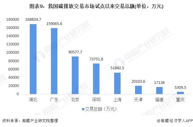 根據(jù)中國(guó)碳排放交易網(wǎng)公布的數(shù)據(jù)來看從2013年各地試點(diǎn)以來,湖北省的碳排放權(quán)交易總額為七個(gè)地區(qū)之中最高為16.88億元。
