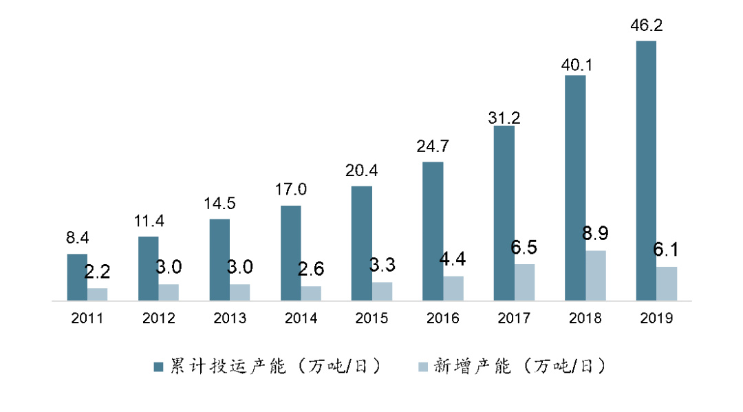 圖表2 2011-2019年我國生活垃圾焚燒處理規(guī)模