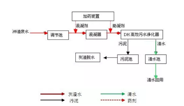 沖灰廢水是火力發(fā)電廠的主要廢水之一,在整個廢水中占有將近一半的比例。它主要是用于沖洗爐渣和除塵器排灰的水,沖灰廢水的污染物種類和含量與鍋爐燃煤的種類、燃燒方式和輸灰方式有關(guān),沖灰廢水中的污染物主要是懸浮物、pH、含鹽量和氟等。個別電廠還有重金屬和砷等。如果沖灰廢水直接排放不但會導(dǎo)致受納水體的懸浮物超標(biāo),還會使附近土壤鹽堿化,破壞正常的生態(tài)環(huán)境。沖灰水處理的思路一是減少水的用量,二是廢水處理再利用或達(dá)標(biāo)排放。如何處理,發(fā)電廠根據(jù)環(huán)保和經(jīng)濟(jì)的雙重效果來抉擇。