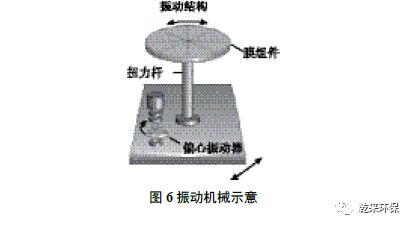 整個膜組件被置于一組振動機(jī)械上。振動機(jī)械利用馬達(dá)和偏心軸承,產(chǎn)生約50 Hz/s 的振動頻率傳到整個膜組,使膜面產(chǎn)生振動。膜面通過往復(fù)振動,在膜面產(chǎn)生強(qiáng)大剪切力,鹽分難以停留在膜面上,可有效防止膜面產(chǎn)生表面結(jié)晶。在高鹽濃度下,結(jié)晶和未結(jié)晶的鹽分被推到濃液口外排。振動機(jī)械示意見圖6。