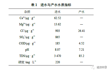 這兩項(xiàng)設(shè)計(jì)可以使廢水在不除硬的前提下進(jìn)行濃縮。按現(xiàn)有的實(shí)踐經(jīng)驗(yàn),震動膜濃液TDS 濃度可達(dá)100 000 μg/g。濃縮比可以達(dá)到90%,即可減少蒸發(fā)量達(dá)90%。產(chǎn)水TDS 濃度約為100mg ˙ L-1 以下,完全滿足回用要求。