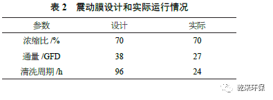 震動膜設(shè)計(jì)和實(shí)際運(yùn)行情況比較見表2。