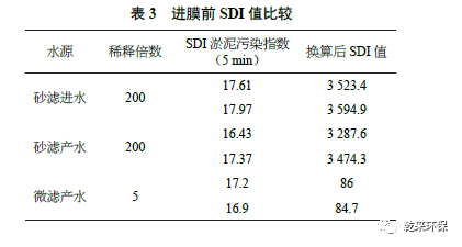 通?;U水進(jìn)膜前主要考慮的參數(shù)是TDS、硬度和COD,但經(jīng)常忽略SDI(泥密度指數(shù))才是關(guān)鍵參數(shù)。影響膜通量的污染物量化指標(biāo)通常采用SDI 值。