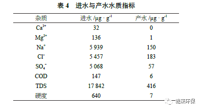 由圖10 可知,微濾處理后,SDI 值由3 500 降至85,整體膜通量和清洗周期得到質(zhì)的改善。采用100 h 作為清洗周期,可滿足原設(shè)計(jì)標(biāo)準(zhǔn)要求。表4 為另一煤化工項(xiàng)目廢水“零排放”震動膜膜濃縮案例的進(jìn)水與產(chǎn)水水質(zhì)指標(biāo)。