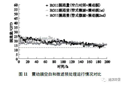 圖11 為震動膜空白和使用兩次微濾預(yù)處理的運(yùn)行結(jié)果對比。